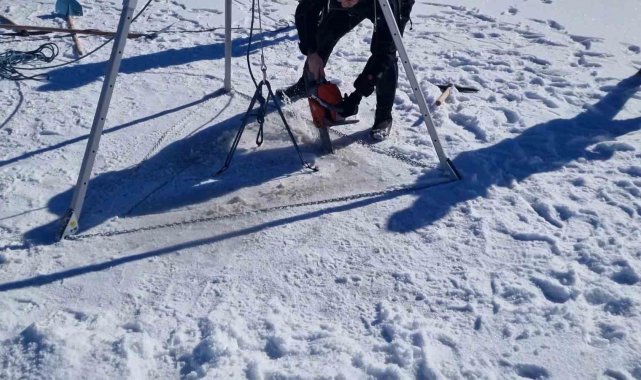 Hava sıcaklığının zaman zaman -30 dereceyi geçtiği Erzurum'da, jandarma ekipleri ortaya çıkabilecek bir afet ya da kaza durumunda hazır olmak için zaman zaman eğitimlerle birlikte tatbikatlarda yapıyor. Erzurum İl Jandarma Komutanlığı SAK Tim Komutanlığı'na bağlı ekipler, Yakutiye İlçesi Konaklı bölgesinde bulunan Tekederesi Göleti'nin tamamen buz tutan yüzeyinde önce hızarla dalgıçların girebileceği yer açtı. Daha sonra dalgıçlar tüple açılan yerden buz gibi gölete girdi.