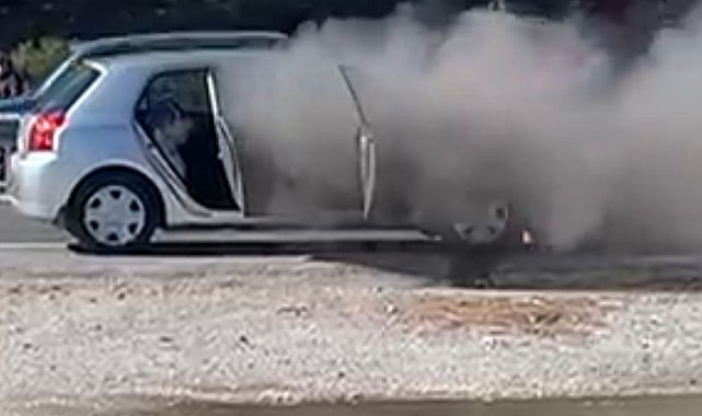 Muğla'nın Sakar Geçidi'nde seyir halindeki bir otomobilde yangın paniği yaşandı. Edinilen bilgiye göre, aracın motor kısmından henüz belirlenemeyen bir nedenle alevler yükseldi. Durumu fark eden sürücü, aracını yol kenarına çekerek itfaiyeye haber verdi. İhbar üzerine bölgeye Muğla Büyükşehir Belediyesi İtfaiye Daire Başkanlığı ekipleri sevk edildi. Kısa sürede olay yerine ulaşan ekipler, motor bölümünde başlayan yangına müdahale ederek alevleri kontrol altına aldı. Yangında araçta maddi hasar meydana gelirken, herhangi bir yaralanma yaşanmadı.