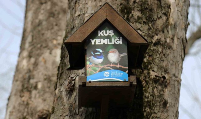 Sakarya Büyükşehir Belediyesi tarafından şehrin park ve meydanlarına yerleştirilen kuş yemlikleri, yiyecek bulmakta zorlanan kuşlar için beslenme olanağı sağlıyor.