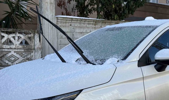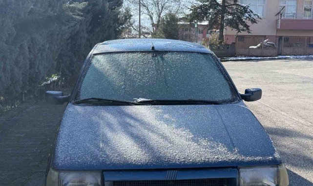 Sakarya'da etkili olan soğuk hava nedeniyle su birikintileri, araçların üstü ve süs havuzları buzla kaplandı.
