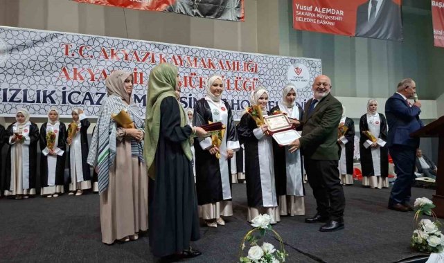 Sakarya'nın Akyazı ilçesinde düzenlenen icazet merasiminde hafızlıklarını tamamlayan 27 öğrenciye taçları giydirilip hafızlık belgeleri takdim edildi.