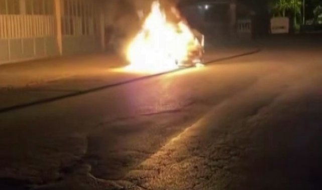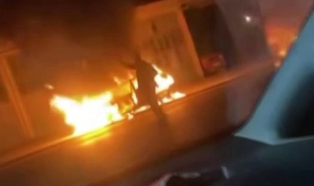 Sakarya'nın Arifiye ilçesinde bulunan Dörtyol Sanayi'de ilginç bir olay yaşandı. Bir vatandaş, İsrail'in zulmüne tepki çekmek için sanayinin ortasında otomobilini yaktı. Alevleri görerek bölgeye giden farklı bir kişi ise akıl almaz olayı cep telefonu ile saniye saniye kayıt altına aldı.