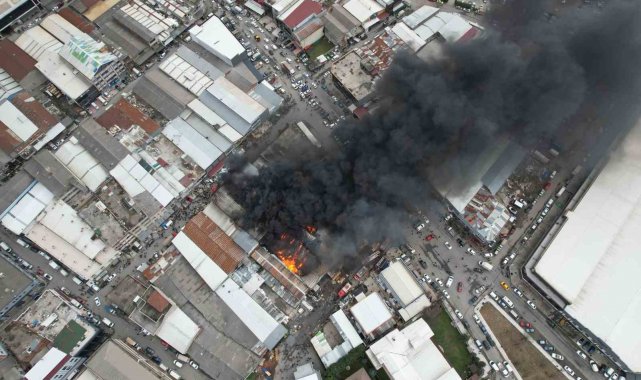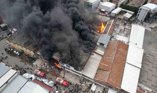 Öte yandan, yanan iş yeri dron ile havadan da görüntülendi.