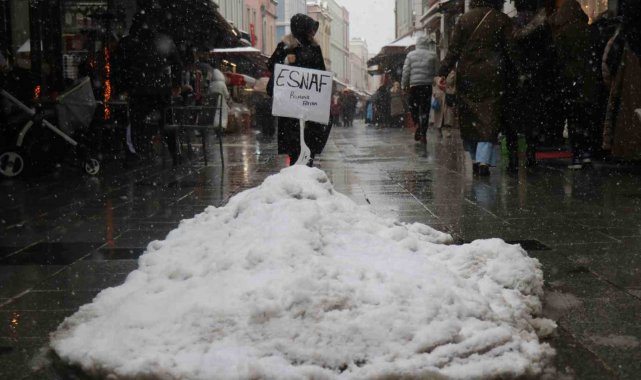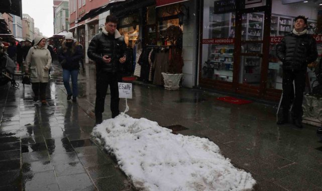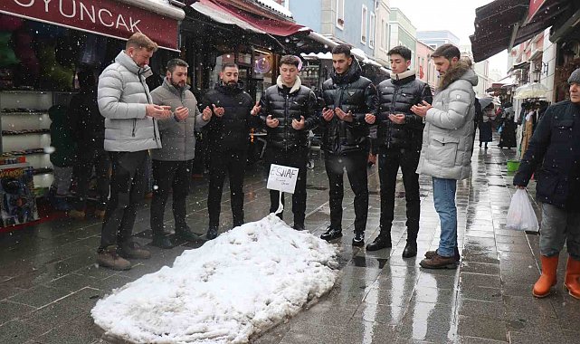Sakarya'nın Adapazarı ilçesinde esnaf, kar yağışının ardından Tarihi Uzun Çarşı'nın ortasına kardan mezar yaparak başında dua etti.