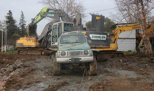 Sakarya Su ve Kanalizasyon İdaresi (SASKİ) ekipleri ve çevredeki hafriyat firmalarının desteğiyle bölgeye yüksek tonajlı ekskavatörler sevk edildi. Yaklaşık 6 gün süren ve 300 ila 490 tonluk dev iş makinelerinin kullanıldığı operasyon sonucunda, mahsur kalan arazi aracı ve 3 iş makinesi bulundukları yerden çıkarıldı.