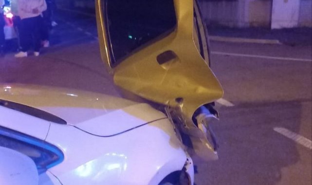 Sakarya'nın Karasu ilçesinde iki otomobilin çarpışması neticesinde meydana gelen kazada bir kişi yaralandı. Kazaya karışan bir otomobilin kapısının diğer aracın farında asılı kalması ise hayrete düşürdü.