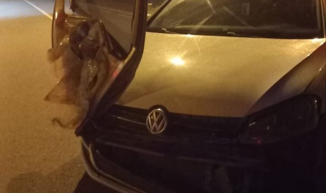 Sakarya'da ilginç kaza: Otomobilin kapısı, çarpıştığı aracın farında asılı kaldı