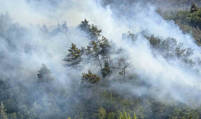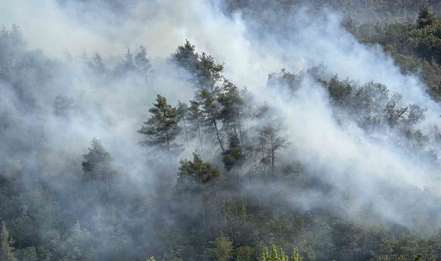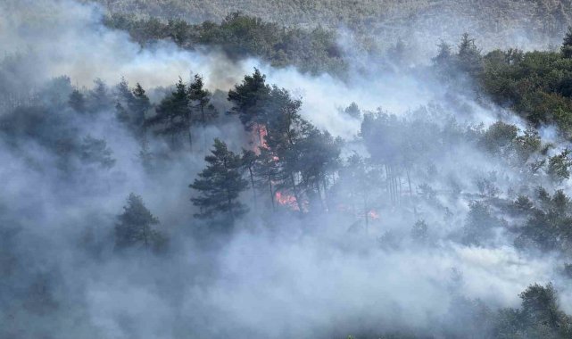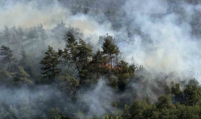 Sakarya'nın Taraklı ilçesinde ormanlık alanda büyük ölçüde kontrol altına alınan yangın, bazı bölgelerde yeniden alevlendi. Yangına ekiplerin hızlı müdahalesiyle kontrol sağlanırken, söndürme çalışmalarına bir helikopter de destek verdi. Alevler ve müdahale anları havadan görüntülendi.