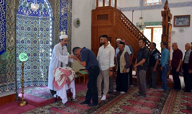 Sakarya'nın Hendek ilçesinde Peygamber Efendimiz Hazreti Muhammed'in Sakal-ı Şerif'i, cuma namazı sonrasında cemaatin ziyaretine açıldı.