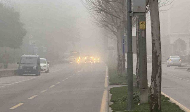 Sakarya'da şehir merkezinde etkili olan sis, görüş mesafesini düşürdü.