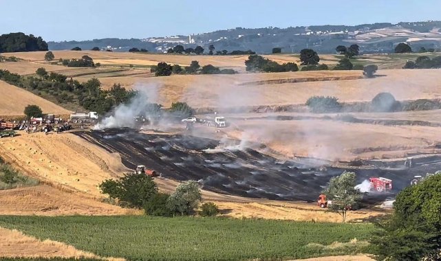 Yangın, Rahmi S'ye ait arazide meydana geldi. Edinilen bilgiye göre, aniden yükselen alevler, rüzgarın da etkisiyle kısa sürede büyüdü. Yangına ilk müdahale, bölgeye sevk edilen itfaiye ekipleri tarafından yapılırken, çevredeki çok sayıda çiftçi de traktör ve tarım ekipmanlarıyla söndürme çalışmalarına destek verdi. Yangının yayılmasını önlemek isteyen çiftçiler, arazinin çevresini traktörlerle sürerek doğal bir set oluşturdu. Bu sayede alevlerin daha geniş alana yayılması engellendi. Balya makinesinden çıktığı düşünülen yangında 200 saman balyası ve 15 dönüm tarla yandı. Jandarma ekipleri yangına ilişkin inceleme başlattı.