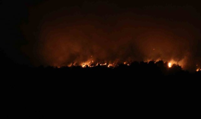 20 Temmuz günü akşam saat 17.15 sıralarında çıkan yangına, ilk andan itibaren ilgili tüm kurumlarla koordineli bir şekilde müdahale edildi. Yangının ikinci gününde ise söndürme çalışmalarına 12 helikopter ve 6 yangın söndürme uçağı ile havadan destek verilirken, karadan da çok sayıda arazöz ve iş makinesiyle personel büyük bir özveriyle görev icra ediyor. Geniş bir alana yayılan yangını söndürmek için mücadele veren ekiplere vatandaşlar da destek veriyor. Aradan geçen yaklaşık 28 saatin sonunda bazı bölgelerde yeniden alevlenme başlarken, alevlerin boyutu hava kararmaya başlayınca ortaya çıktı. Ekiplerin söndürmek için müdahale ettiği yangın havadan görüntülendi.