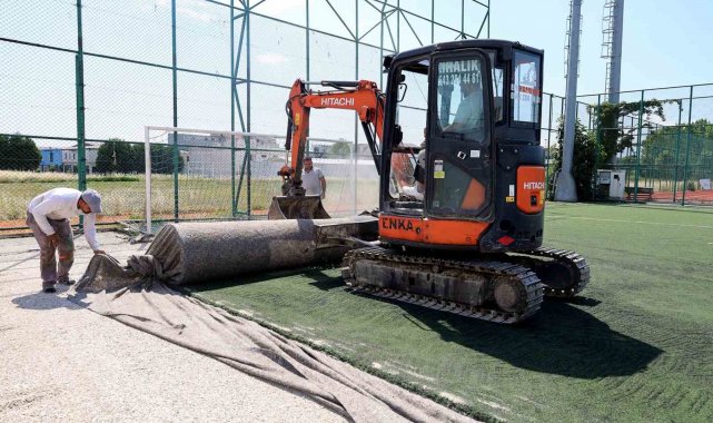 Sakarya Büyükşehir Belediyesi, kentin spor altyapısını güçlendirmek ve yeni spor alanları kazandırmak için yürüttüğü çalışma çerçevesinde Ekrem Karaberberoğlu Altyapı Tesisleri'nin sentetik çimlerini yeniliyor.