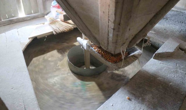 Değirmendere Mahallesi'nde bulunan tarihi yapıda, 3 kilometre mesafeden su kanallarıyla getirilen suyun gücüyle dönen dev taşların arasında mısır ve buğday geleneksel yöntemlerle öğütülüyor. Fabrikasyon üretime direnerek doğallığını koruyan değirmende, unun kalitesini artırmak için yaklaşık 300 kilogram ağırlığındaki taşlara 3 ayda bir el işçiliğiyle bakım yapılıyor.