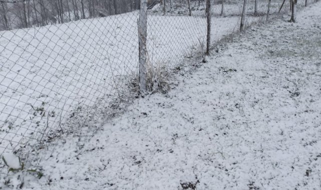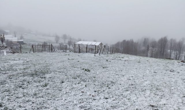 Sakarya'nın yüksek kesimlerinde etkili olan kar yağışı sonrası yeşil alanlar beyaza büründü.