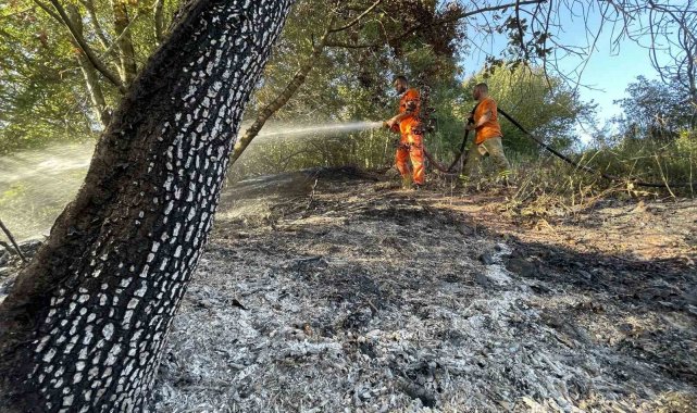 Sakarya'nın Adapazarı ilçesinde ormanlık alanda çıkan yangın ekiplerin müdahalesiyle söndürülürken yaklaşık 4 dönüm alan kül oldu.