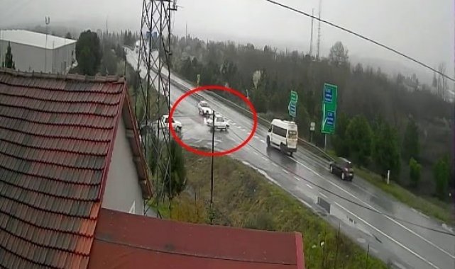 Öte yandan, 3 aracın karıştığı trafik kazası güvenlik kamerasına yansıdı. Görüntülerde, 81 ACP 115 plakalı Tofaş marka otomobilin kontrolsüz ana yola çıktığı esnada 54 AR 868 plakalı Tofaş marka otomobilin çarpması ve ardından kontrolden çıkan otomobilin minibüse çarpması yer alıyor.