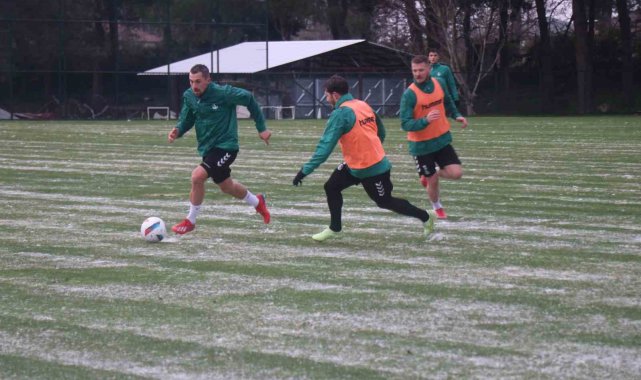 Sakaryaspor, Trendyol 1. Lig'in 23. haftasında Çorum FK ile evinde oynayacağı maçın hazırlıklarını kar yağışı altında sürdürdü.