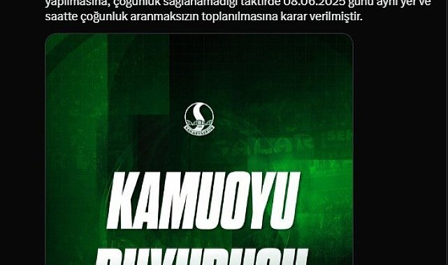 Konuya ilişkin Sakaryaspor'un sosyal medya hesabından yapılan yazılı açıklamada, "Sakaryaspor Kulübü Derneği Yönetim Kurulu 17.05.2025 tarihinde saat 14.00'de dernek merkezinde gerçekleştirdikleri toplantıda oy çokluğu ile Olağanüstü Genel Kurul kararı almışlardır. Sakaryaspor Kulübü'nün Olağanüstü Genel Kurul Toplantısı 1 Haziran 2025 günü saat 12.00'de Sakarya Atatürk Stadyumu'nda yapılmasına, çoğunluk sağlanamadığı taktirde 8 Haziran 2025 günü aynı yer ve saatte çoğunluk aranmaksızın toplanılmasına karar verilmiştir" denildi.