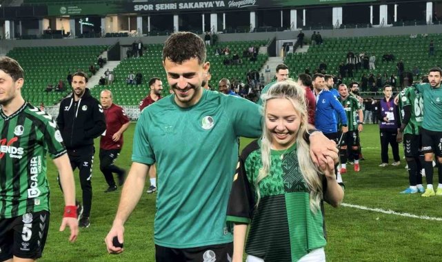 Teklifin ardından çift, tribünlere giderek Sakaryaspor taraftarlara üçlü çektirdi.