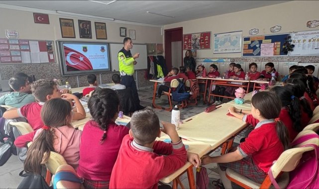 Aydın'ın Sultanhisar ilçesi Savatlı Mahallesi'ndeki Salavatlı İlkokulu'nda jandarma trafik ekipleri öğrencilere yönelik trafik eğitimi verdi.
