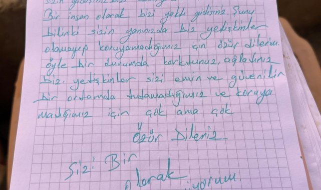 "Sizi tanımadım ve siz de beni tanımadınız. Ben sadece bir babayım. Sizin güzelliğinizi az çok gördük. Sizin gibi insan olmak çok güzel görünüyor. Böyle bir durumda korktunuz ağladınız. Biz yetişkinler sizi emin ve güvenilir bir ortamda tutamadığımız ve koruyamadığımız için çok ama çok özür dileriz."