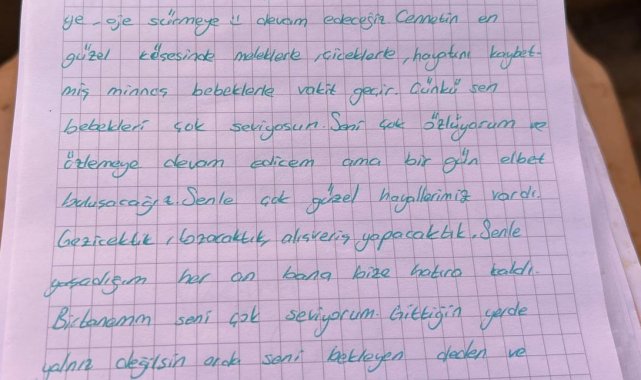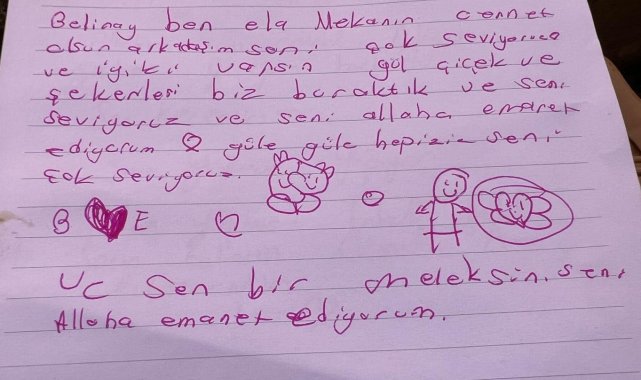 Bir başka notta ise, "Tatlı Belinay'ım canım gittiğin yerde mutlusundur. Bir gün biz de oraya geleceğiz ve ben ilk senin yanına geleceğim. Seni karalar giyinip yeşile sarmaya devam edeceğiz. Cennetin en güzel köşesinde meleklerle birlikte hayatını kaybetmiş minnoş bebeklerle birlikte çok seviyoruz. Seni çok özlüyorum ve özlemeye devam edeceğim ama bir gün elbet buluşacağız. Senle çok güzel hayallerimiz vardı. Gezecektik beraber aktivite yapacaktık. Senle yaşadığım her an bana kazanç kattı. Biliyorum seni çok seviyorum gittiğin yerde yalnız değilsin" ifadeleri yer alıyor.