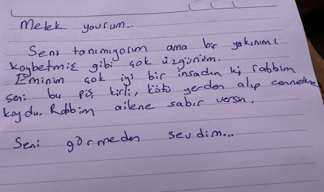 Not defterindeki bir diğer yazı ise şu şekilde: