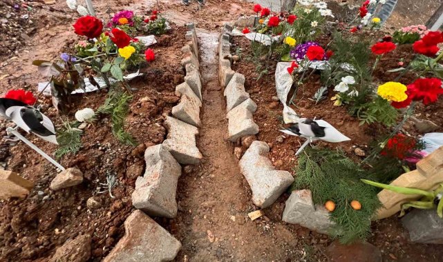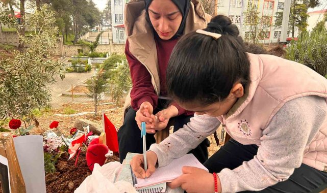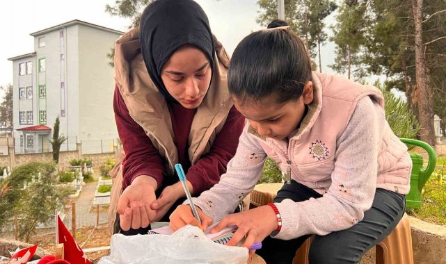Kahramanmaraş Şeyh Adil Mezarlığı'na gelen vatandaşlar okul saldırısında hayatını kaybeden çocukların kabirlerini ziyaret ediyor. Kur'an-ı Kerim okuyup dua eden vatandaşlar not defterlerine de duygularını yazıyor.