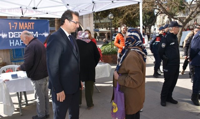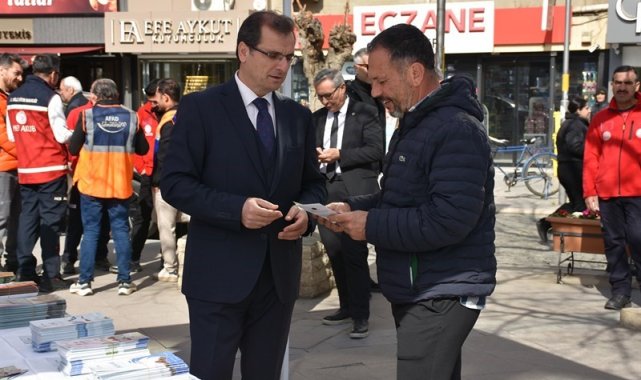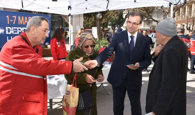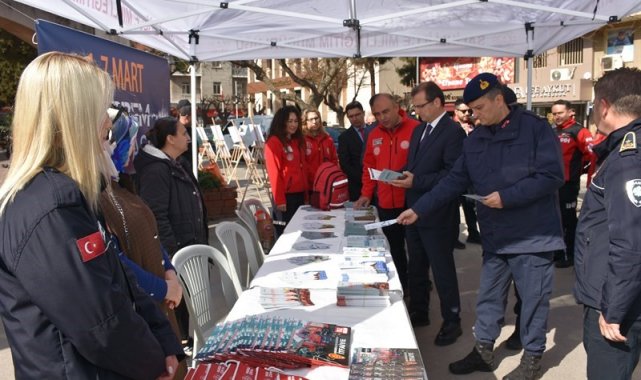 Hamidiye Camii önünde kurulan stantta, kurtarma ekipleri ve ilgili birimlerle birlikte vatandaşlara deprem ve acil durum bilinci kazandırmak için eğitim materyalleri ve broşürler dağıtıldı.