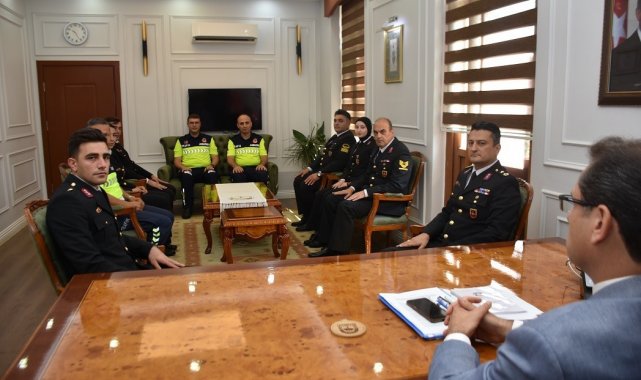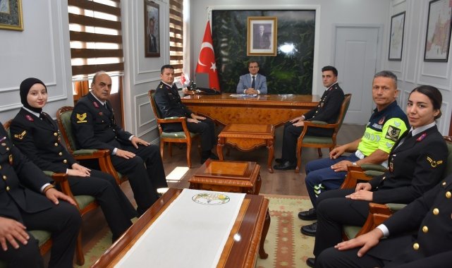 Jandarma Teşkilatı'nın 186'ncı kuruluş yıldönümü dolayısıyla Salihli İlçe Jandarma Komutanı Binbaşı Doğukan Karaaslan ve beraberindeki jandarma personelleri, Kaymakam Ali Güldoğan'ı ziyaret etti.