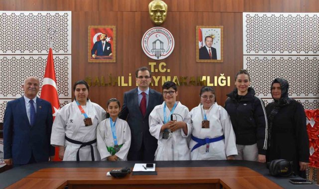 Manisa'nın Salihli ilçesini temsilen katıldıkları ulusal karate müsabakalarında önemli başarılar elde eden sporcular ve antrenörleri, Kaymakam Ali Güldoğan'ı makamında ziyaret etti.