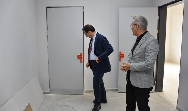 Cumhuriyet Mahallesi'nde, Fahriye Hanım İlkokulu yanında yapımı sürdürülen Fatma Akif Ceylan Anaokulunda yetkililerden bilgi alan Kaymakam Güldoğan, inşaatın son durumu ve ilerleme aşamaları hakkında değerlendirmelerde bulundu.