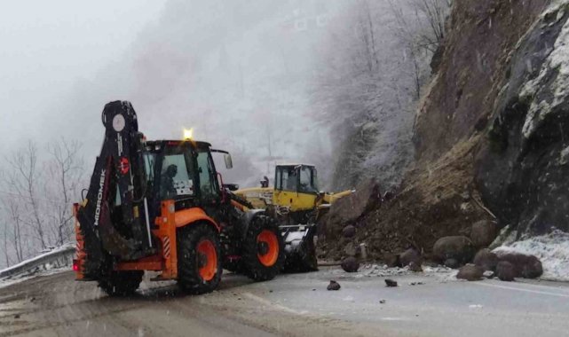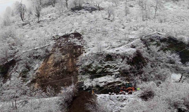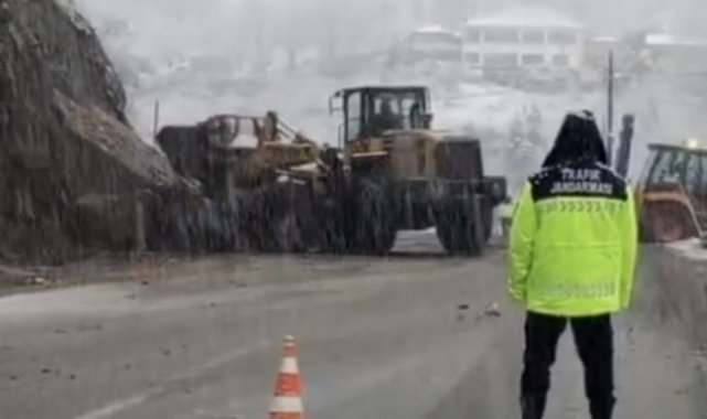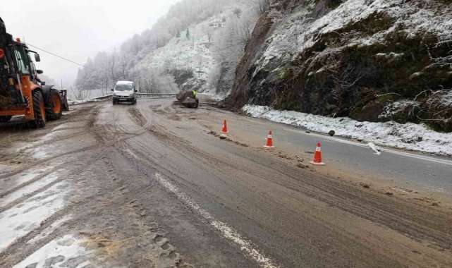 Trabzon'un Şalpazarı-Beşikdüzü karayolunda dün akşam saatlerinde başlayan yoğun yağmur ve ardından etkili olan kar yağışı nedeniyle heyelan meydana geldi.