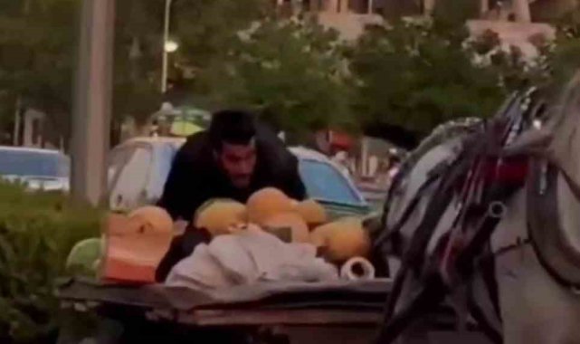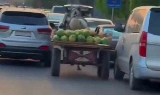 Şam'da karpuz yüklü at arabası trafiği birbirine kattı