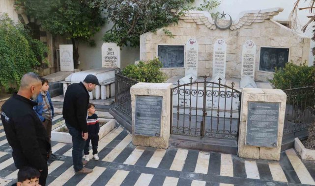 Suriye'nin başkenti Şam'daki tarihi Emevi Camii'nin arka kısmında yer alan Türk havacılık tarihinin ilk şehitlerine ait mezarlarda ziyaretçi yoğunluğu yaşanıyor.