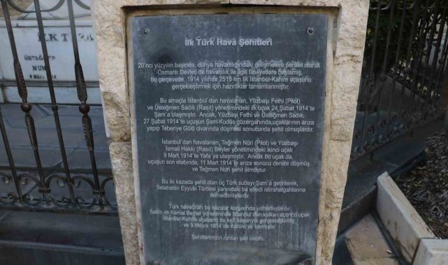 Osmanlı Devleti döneminde 1914 yılında ilk kez İstanbul'dan Kahire'ye 2 bin 515 kilometrelik uçuşu gerçekleştirmek üzere çıktıkları yolda hayatını kaybeden Türk subayları Pilot Yüzbaşı Fethi, Üsteğmen Sadık ve Üsteğmen Nuri, Türk havacılık tarihinin ilk şehitleri oldu. Şehitlerin naaşı, Suriye'nin başkenti Şam'da bulunan Emevi Camii'nin arka kısmında Selahaddin Eyyubi Türbesi'nin yanına defnedildi. 111 yıldır bölgede bulunan mezarlıkta 2011 yılında başlayan iç savaşın sona erdiği Aralık ayından bu yana ziyaretçi yoğunluğu yaşanıyor. Şehitliğe gelerek dua ettiğini ifade eden Ali Bakranlı, "Burası Şam'da Emevi Camii'nde bulunan Selahattin Eyyubi bahçesindeki ilk Türk Hava Şehitleri Anıtı. Burada 3 Türk şehidi bulunuyor. Ben de geldim duamı ettim, Fatiha okudum" dedi.