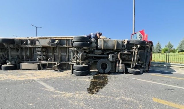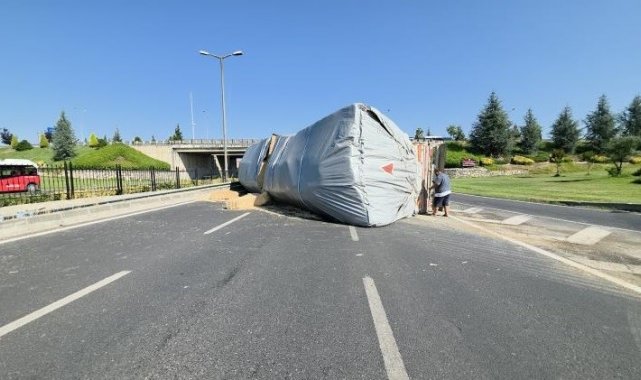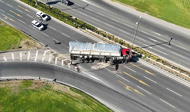 100 kara yolu Kervan Kavşağı mevkisinde saman yüklü tır aracı devrildi. Kaza sonrası tırdan çıkan sürücü önce mazot hortumlarını kontrol etti, ardından ise 'hızlıydım' dedi.
