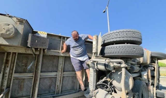 Saman yüklü tır devrildi, sürücü 'hızlıydım' dedi