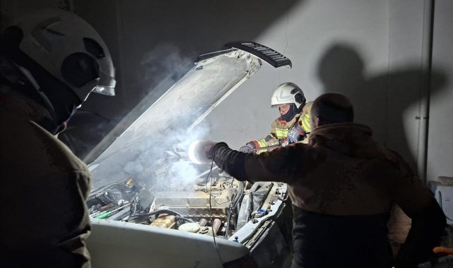 Hatay'da park halindeyken motor kısmı yanan otomobilde hasar oluştu.