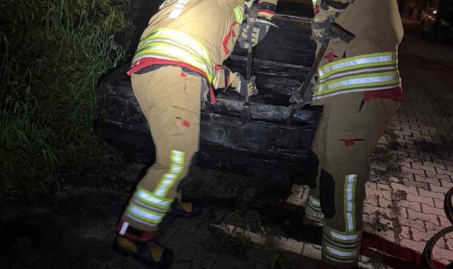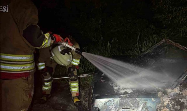 Hatay'da park halindeyken alevlere teslim olan FİAT TOFAŞ marka otomobil yanarak kullanılmaz hale geldi.