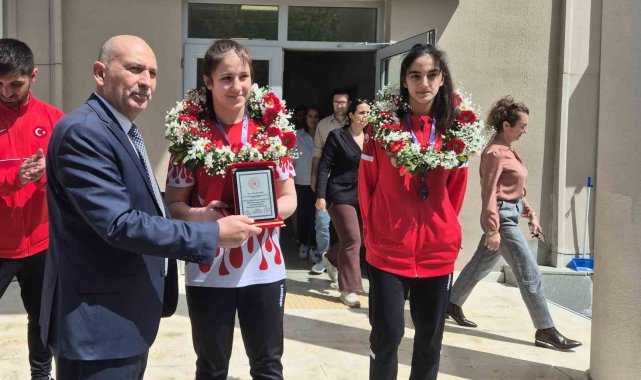 Sırbistan'da düzenlenen ISF 15 Gymnasiade Okul Sporları Dünya Güreş Şampiyonası'nda önemli dereceler elde eden Tekirdağlı milli sporcular Esma Nur Kara ve Berfin Avcı, kentte konvoyla karşılandılar.