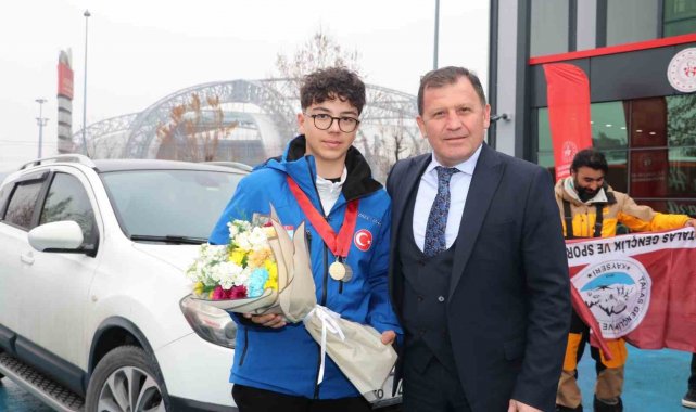 Türkiye'ye Paralel Slalom Yarışmaları'nda ilk altın madalyayı kazandıranKayserili Kayakçı Ömer Faruk Deliktaş, İsviçre dönüşünde Kayseri'de coşkulu bir şekilde karşılandı.