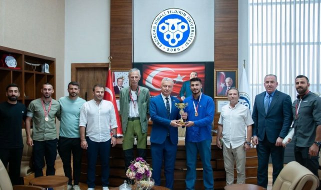 Erzincan Binali Yıldırım Üniversitesi Spor Bilimleri Fakültesi öğrencilerinden oluşan Palan Extreme 2025 birincisi "Alpha Team", Rektör Prof. Dr. Akın Levent'i makamında ziyaret etti.