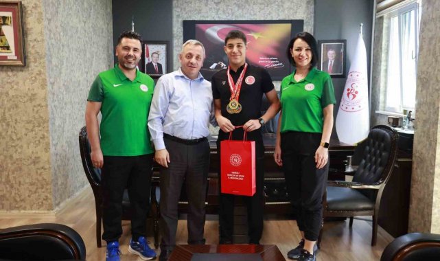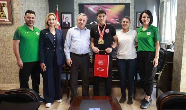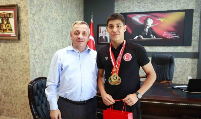 Denizlili Milli yüzücü İbrahim Burhan, ulusal ve uluslararası başarılarının ardından Gençlik ve Spor İl Müdürü Süleyman Erdoğan'ı ziyaret ederek elde ettiği başarıları ve gelecek hedeflerini Erdoğan'la paylaştı.