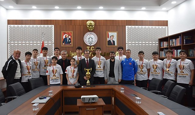 Niğde'de düzenlenen Okul Sporları Hentbol Türkiye Finalleri'nde büyük bir başarıya imza atarak Türkiye şampiyonu olan 50. Yıl Ortaokulu Yıldız Erkek Hentbol Takımı, kazandıkları kupa ve madalyalarla birlikte Salihli Kaymakamı Ali Güldoğan'ı makamında ziyaret etti.