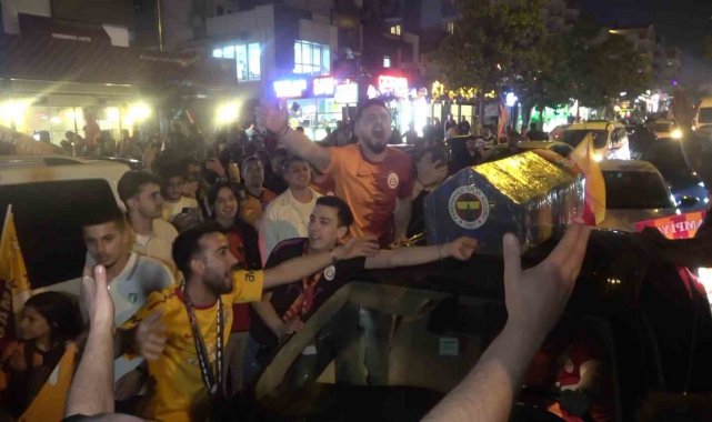 Trendyol Süper Lig'de 25. kez şampiyon olan Galatasaray'ın taraftarları Bursa'da meydanları doldurarak Fenerbahçe tabutuyla şampiyonluk turu attı.