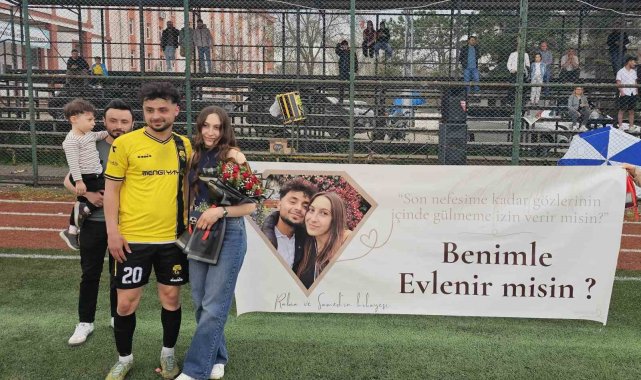 Kastamonu 1. Amatör Lig'de mücadele eden Cide Belediyespor evinde Pınarbaşıspor'u 9-0 yenerek şampiyon oldu. Bölgesel Amatör Lig'e yükselmek için play-off turuna çıkmaya hak kazanan Cide Belediyespor, statta kupa kaldırarak şampiyonluğu kutladı. Takım oyuncularından Samed Duman, tribünden karşılaşmayı izleyen kız arkadaşın Rabia Aydın'ı maç sonunda sahaya davet etti. Daha sonra tribündeki taraftarlar, 'Benimle evlenir misin' yazılı pankart açtı. Bu sırada Duman, kız arkadaşına yüzüğü uzatarak evlilik teklifine bulundu. Kız arkadaşının teklifi kabul etmesi üzerine diğer futbolcular tezahüratlarla çifti kutladı.