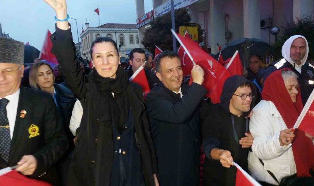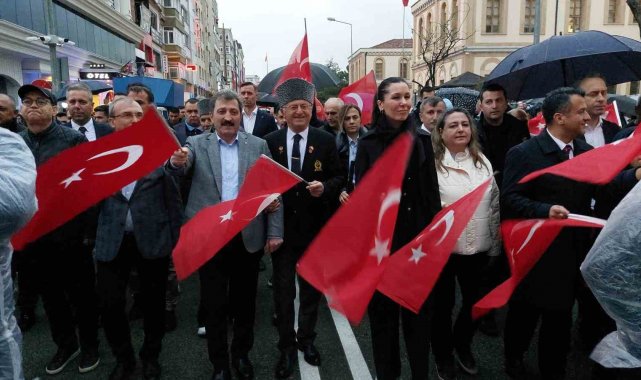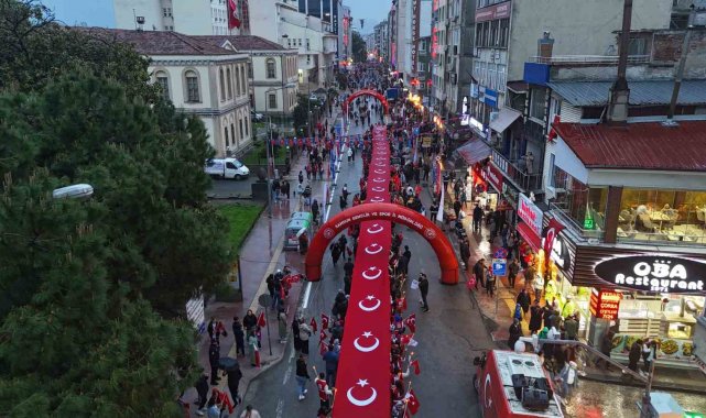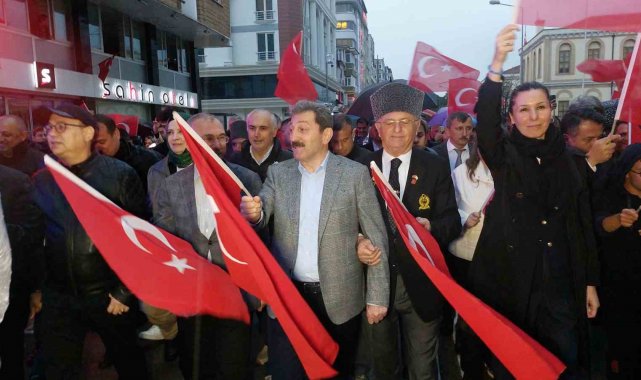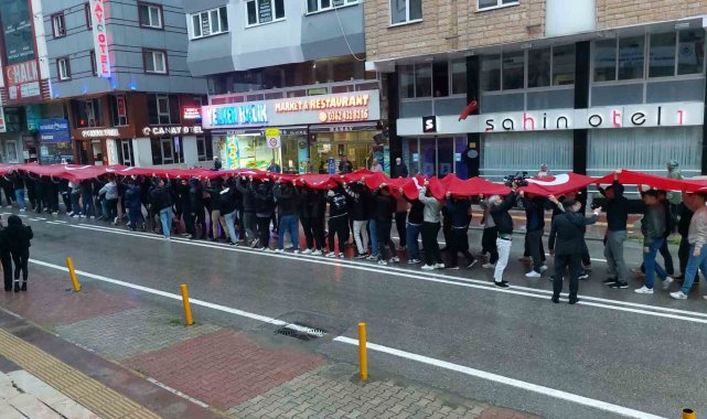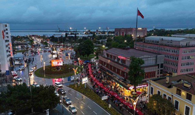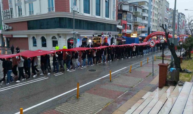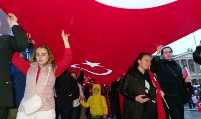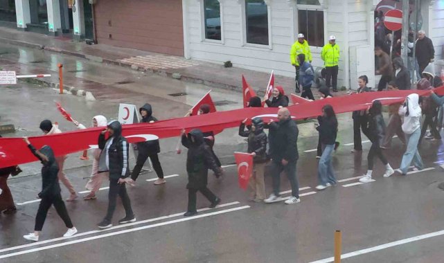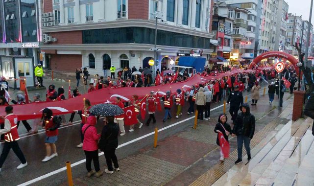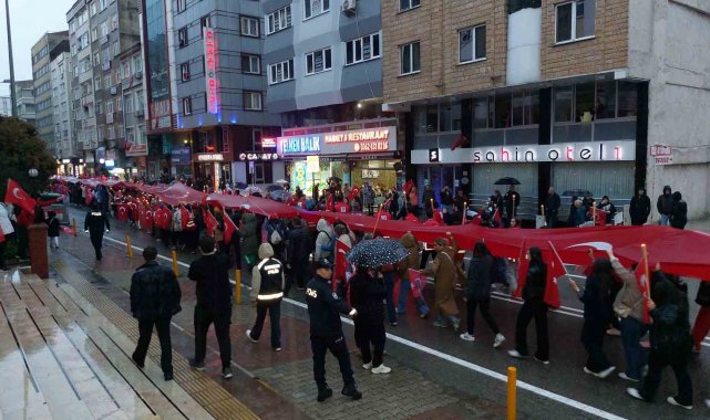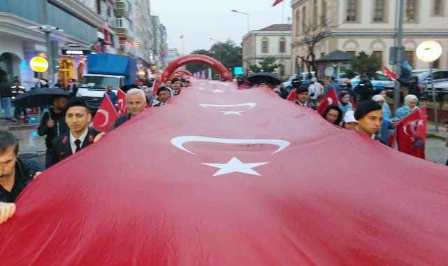 Samsun'da 1919 metrelik bayrakla yağmur altında "Bayrak ve Fener Alayı" yürüyüşü