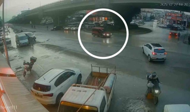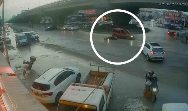 Samsun'da hafif ticari araçla çarpışan motosikletteki 2 kişinin yaralandığı kaza güvenlik kamerasına yansıdı.